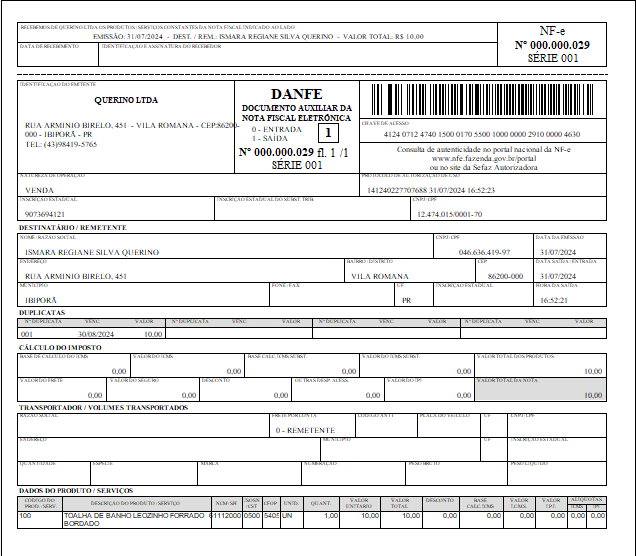 Exemplo de NFe pessoa fisica: