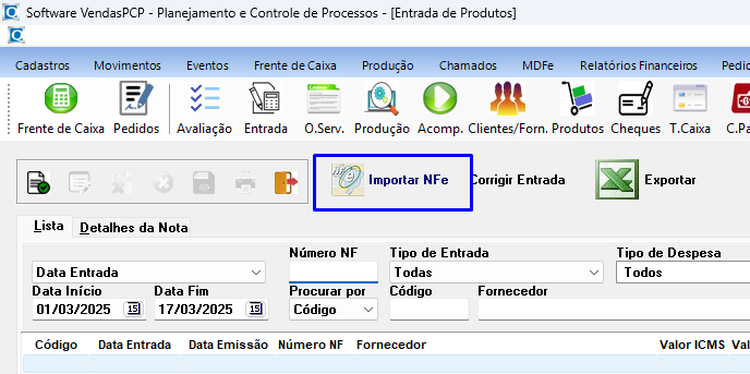 - Clique na opção Importar NF-e.