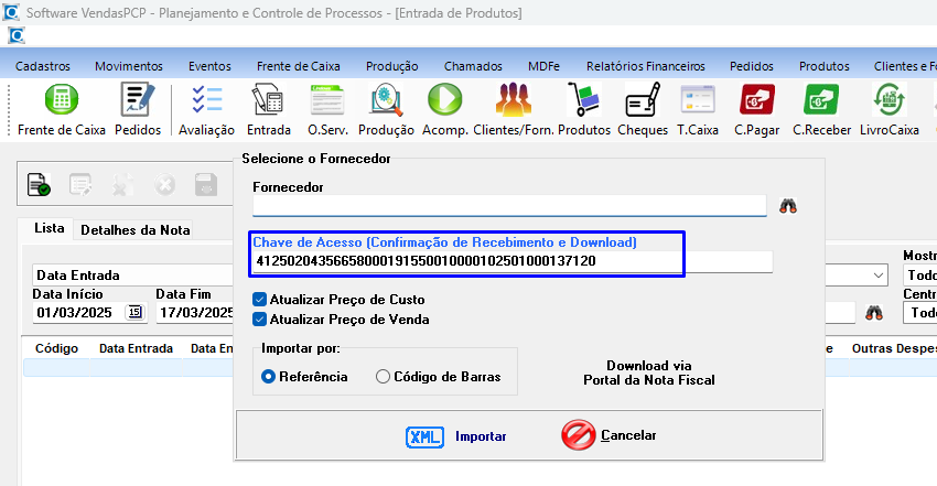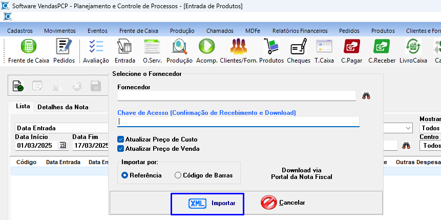 Para realizar a entrada de produtos via arquivo XML, siga os passos abaixo: