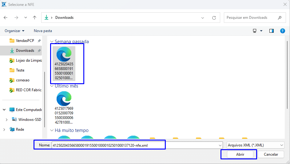 Ou, selecionando o arquivo XML salvo no computador: