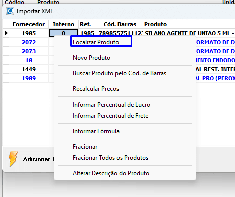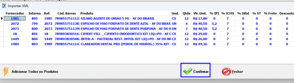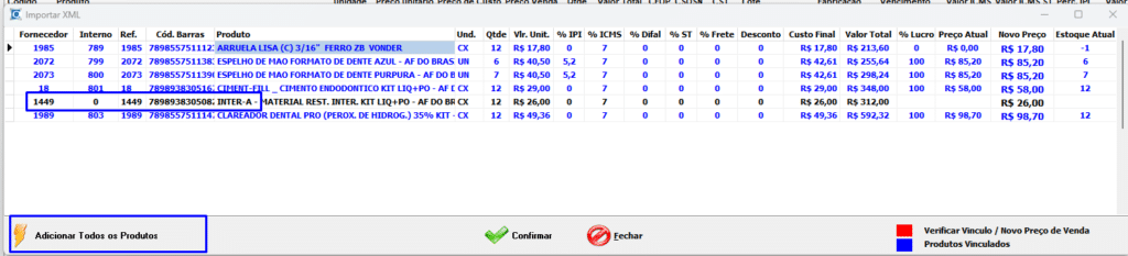 Caso o produto seja novo, clique em Adicionar Todos os Produtos para incluí-los no sistema.