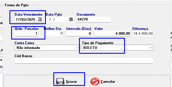 Caso seja necessário registrar os pagamentos da nota fiscal: